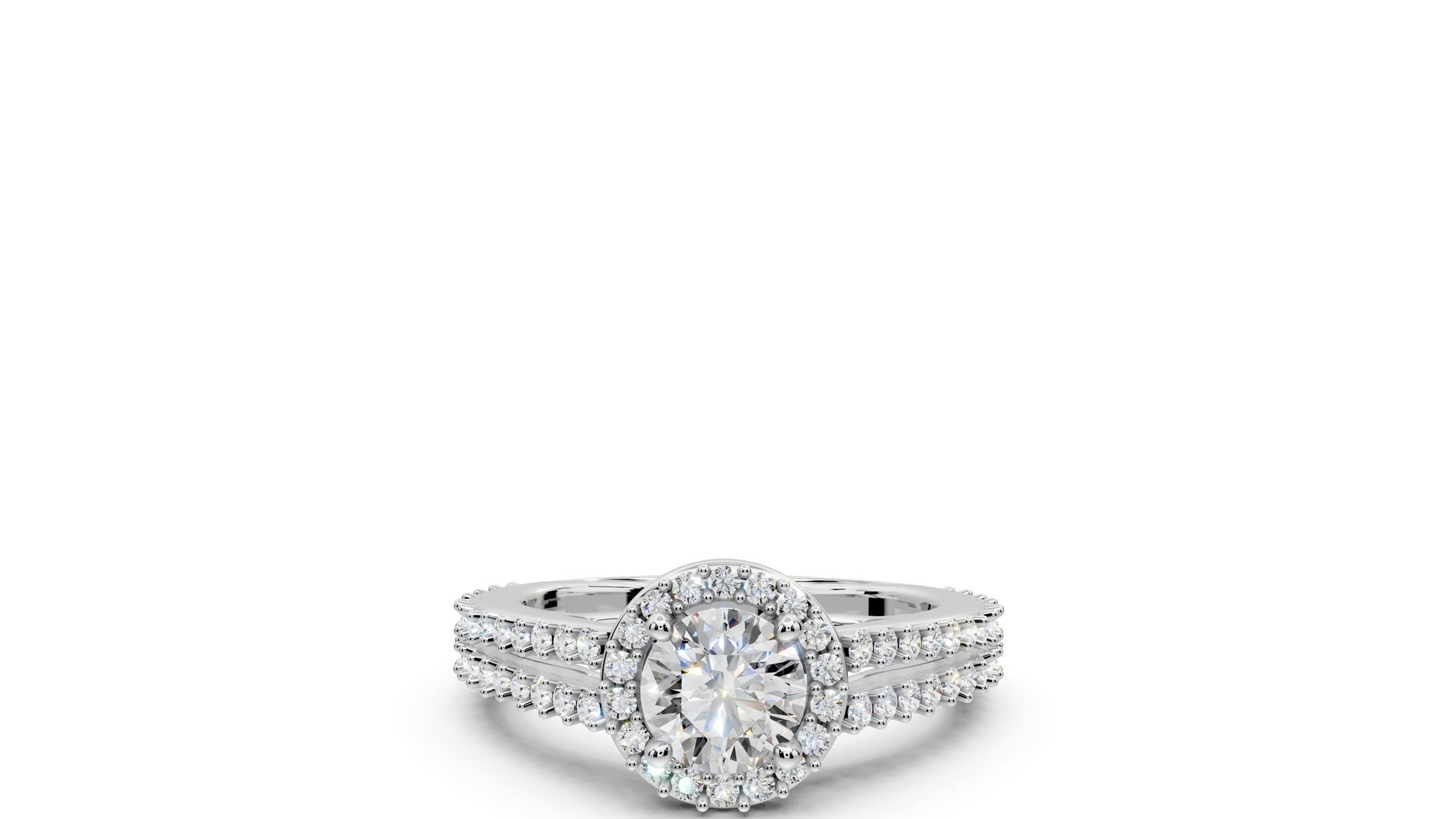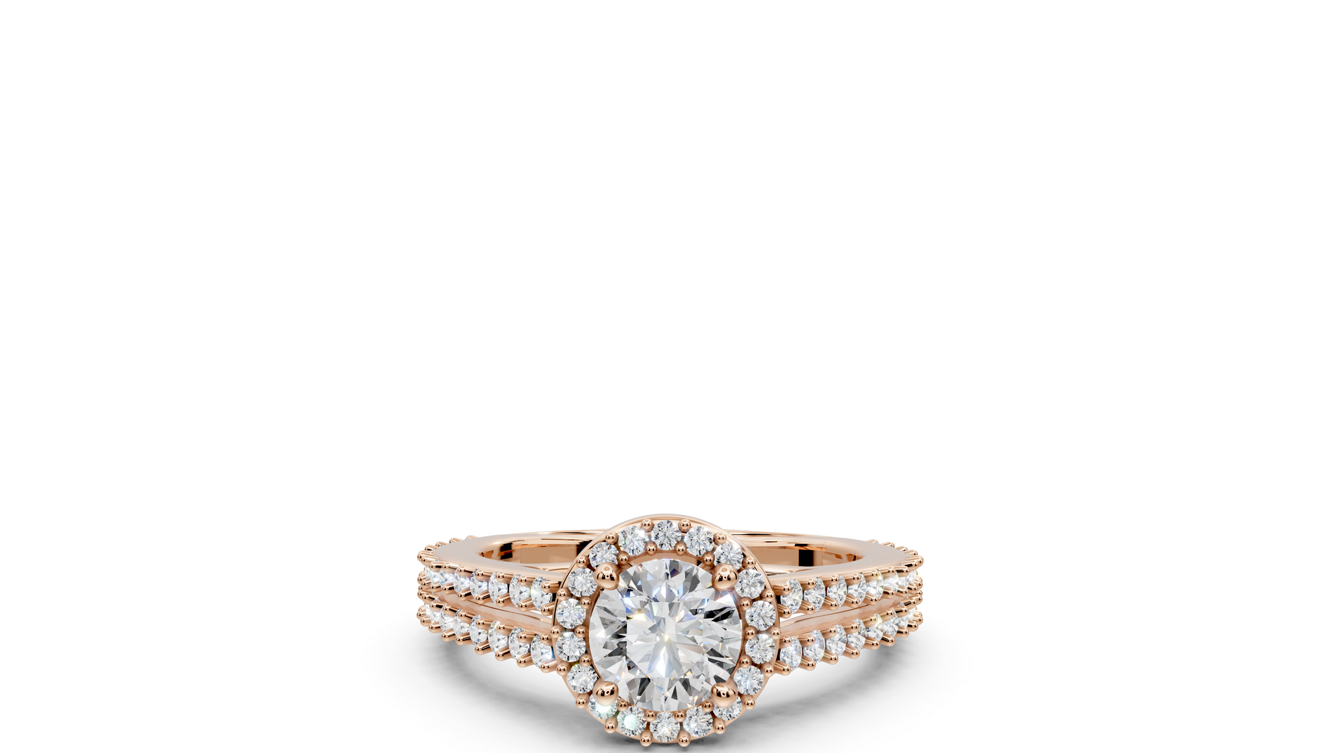 Vår fantastiska Halo ring med Pave setting. Center stenen på bilden är 0.75 carat. Klicka på displayen och börja designa din egna Halo ring
